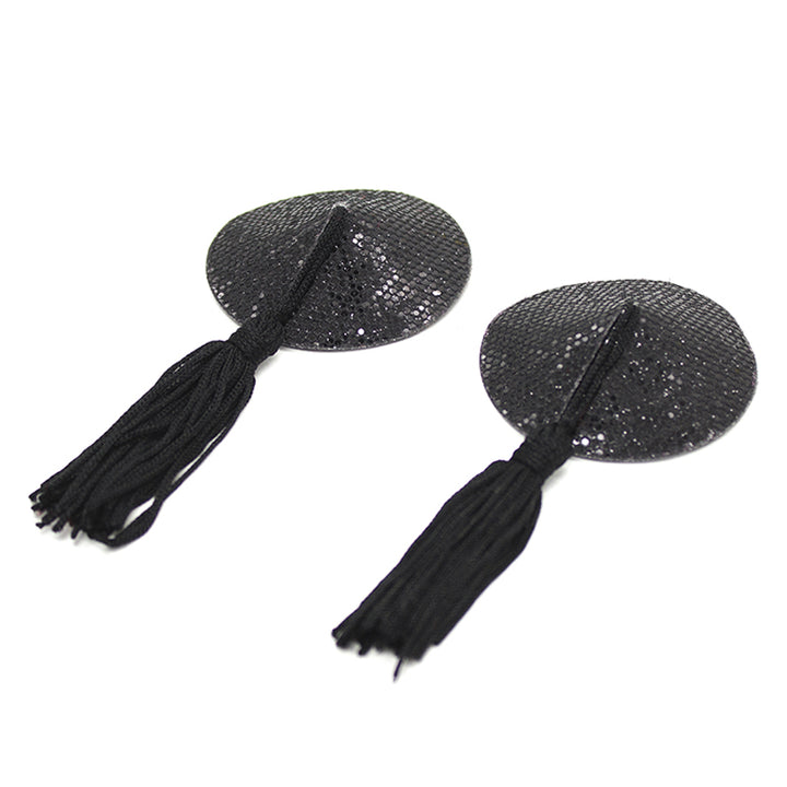 Diese mit Pailletten besetzten Nippelhüllen haben eine burleske Seele, die zum Striptease oder zum Durchgucken unter dem Shirt einlädt. Sie sind in klassischer runder Form gefertigt, komplett mit feinen Pailletten besetzt und mit einer zarten Quaste versehen, die bei jeder Bewegung mitschwingt. Die Brustwarzenhüllen haften mit einem hypoallergenen Klebstoff auf der Brust. Mit Wasser und Seife abziehen und an der Luft trocknen lassen.