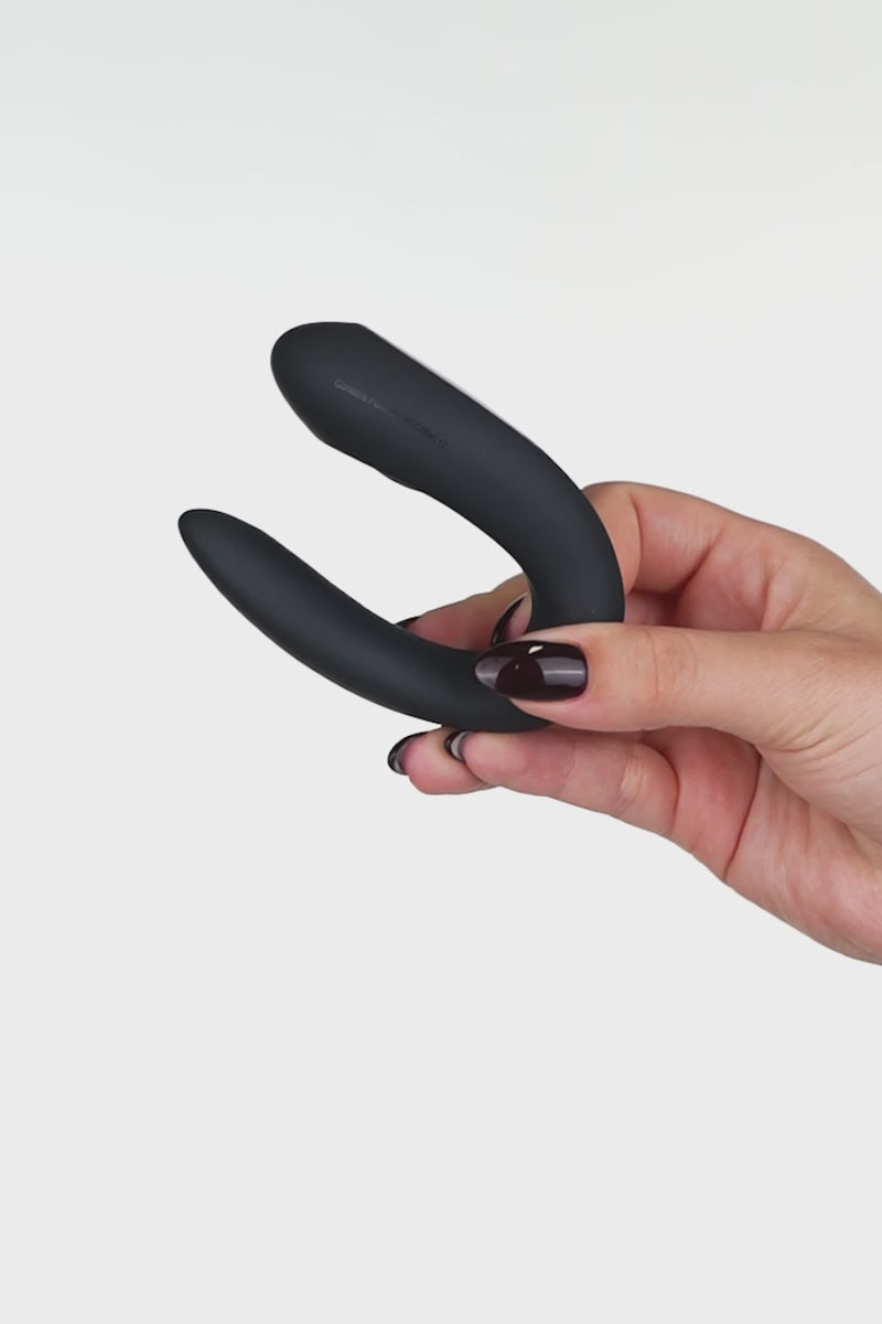 Specifically designed for couples to enjoy both the man and the woman. Double Joy is worn internally by the woman during penetrative sex, one part stimulates the vagina along with the penis, the other wraps around the mound. This " C-shaped" vibration is perfect for the stimulation of the G-spot and the clitoris that receives a firm pressure at each thrust. Double Joy is a double orgasm for both of you! Thanks to its IPX7 waterproof finish it can also be used in water. This couples vibrator works without or with App to make love at a distance and offer the opportunity to explore a shared experience between partners "in real time".