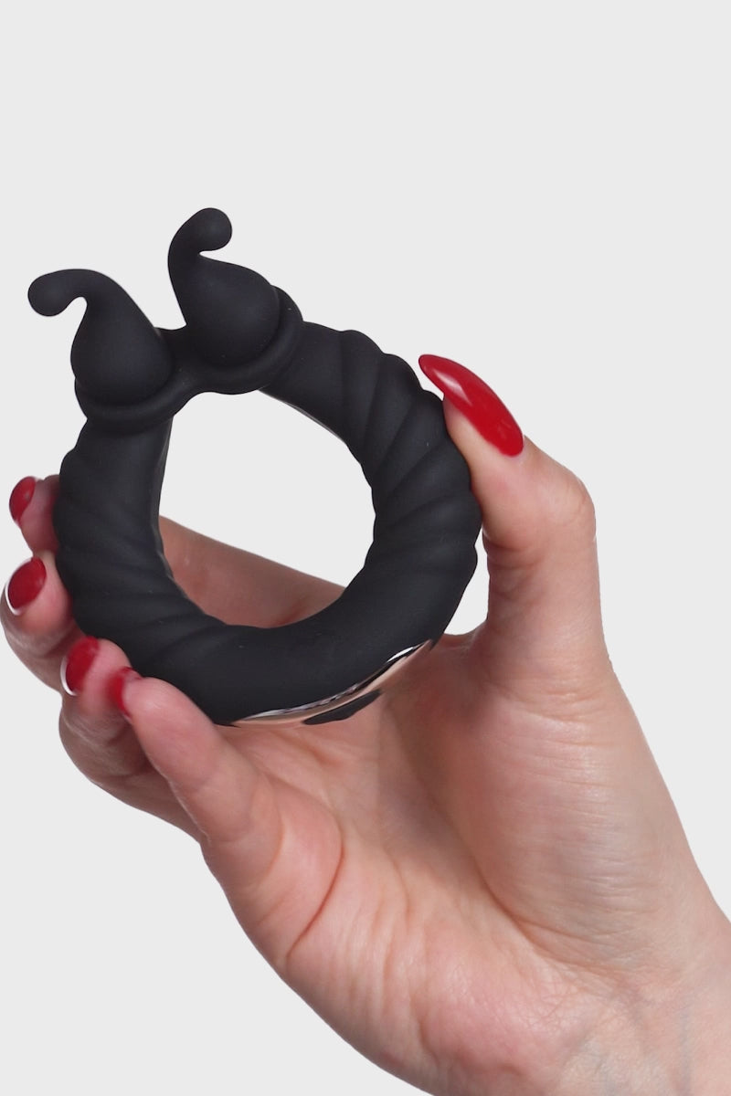 Ciclone è l’anello vibrante per il pene che stravolge ogni equilibrio: stringe, vibra, stimola con le sue doppie punte flessibili e porta entrambə all’epicentro del piacere.