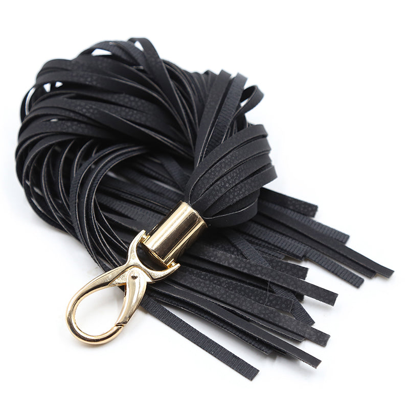 La Frange en cuir est un accessoire de bondage imaginatif et utile qui vous permet discrètement de donner ou de recevoir une bonne fessée. Grâce à ce porte-clés mini-fouet, vous pouvez montrer vos talents de dominant n'importe où ! Utilisez le petit mousqueton pour l'attacher à votre porte-clés et gardez-le sur vous à tout moment. Au besoin, décrochez-le et, avec des mouvements séduisants, faites-le glisser sur le corps de votre partenaire pour le faire frissonner d'excitation !