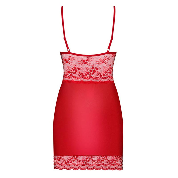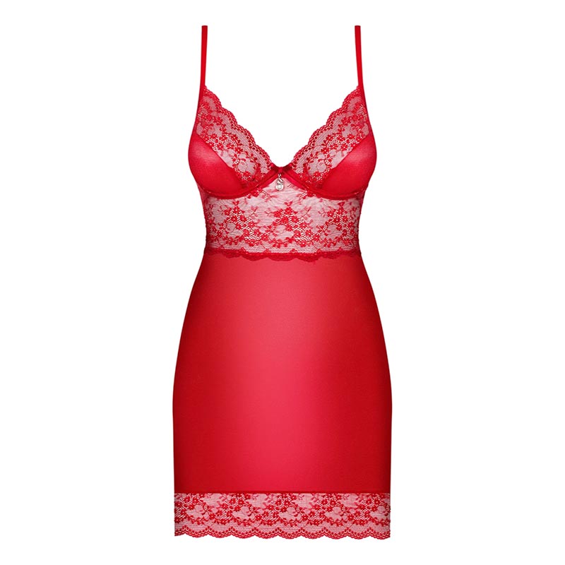 Sexy e incredibilmente femminile. Ecco come apparirai con Lovica Chemise & Thong di Obsessive, un vestitino rosso sexy. Senti il tocco delizioso del tessuto liscio e del pizzo delicato. Lascia che la lucentezza di questo completo sexy ti regali il fascino per stupire il partner. Le spalline regolabili offrono una perfetta vestibilità e le coppe con ferretto sottolineano il seno. Il grazioso fiocco e il dettaglio lucido tra le coppe, attireranno tutta l'attenzione su di te!