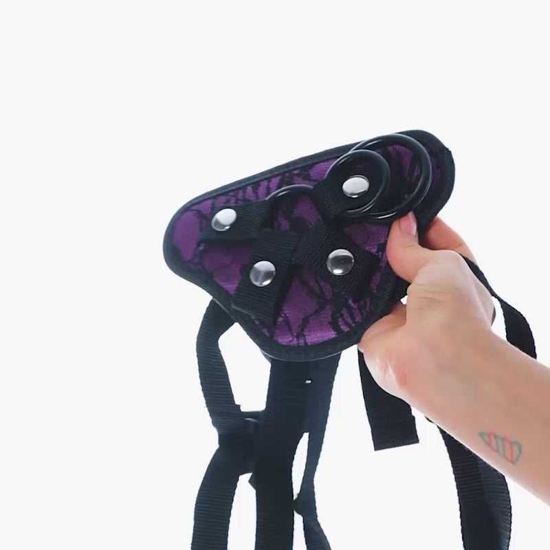 Questo harness ti farà ballare al tempo del pegging, con tre anelli di dimensioni diverse che tengono saldo il dildo e una tasca segreta per un bullet che vibra al ritmo del tuo corpo.